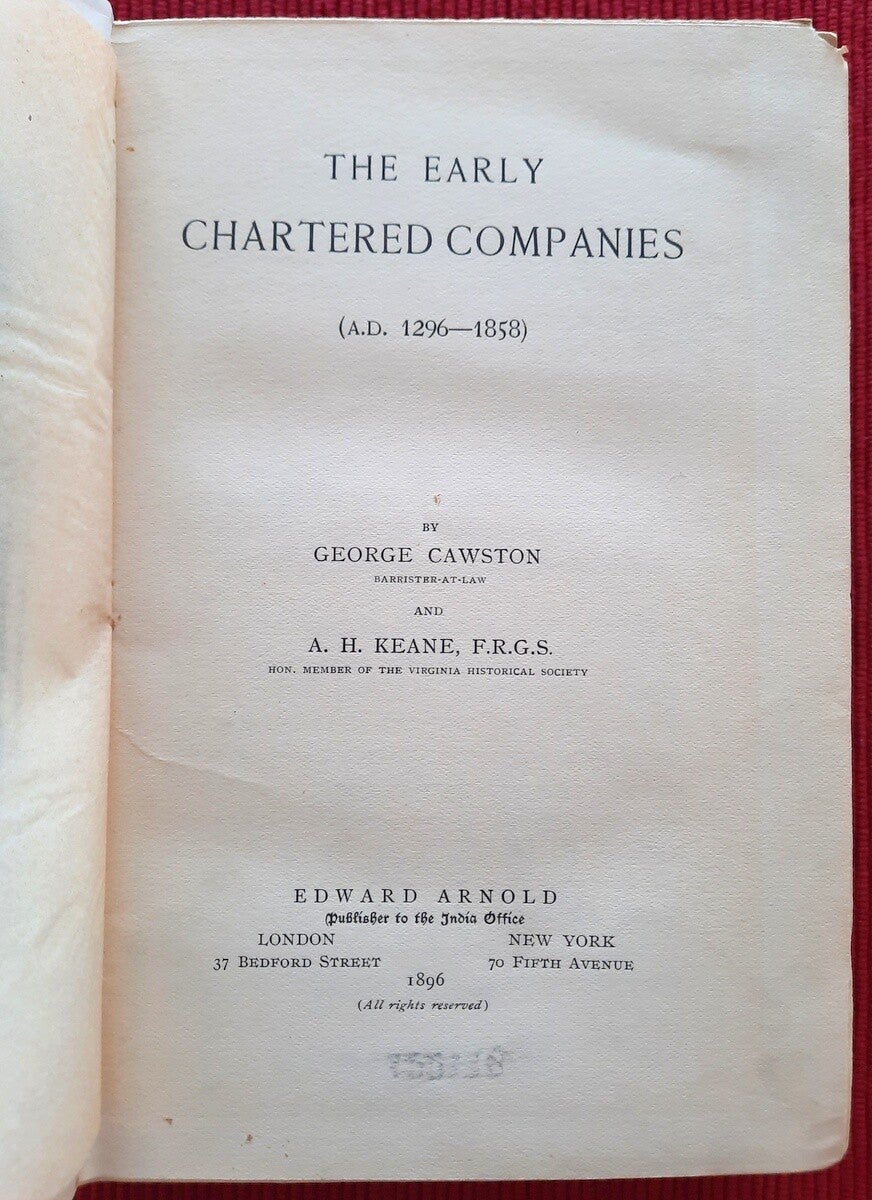 Cawston, G.; Keane, A.H. - THE EARLY CHARTERED COMPANIES (A.D. 1296-1858) (1896)