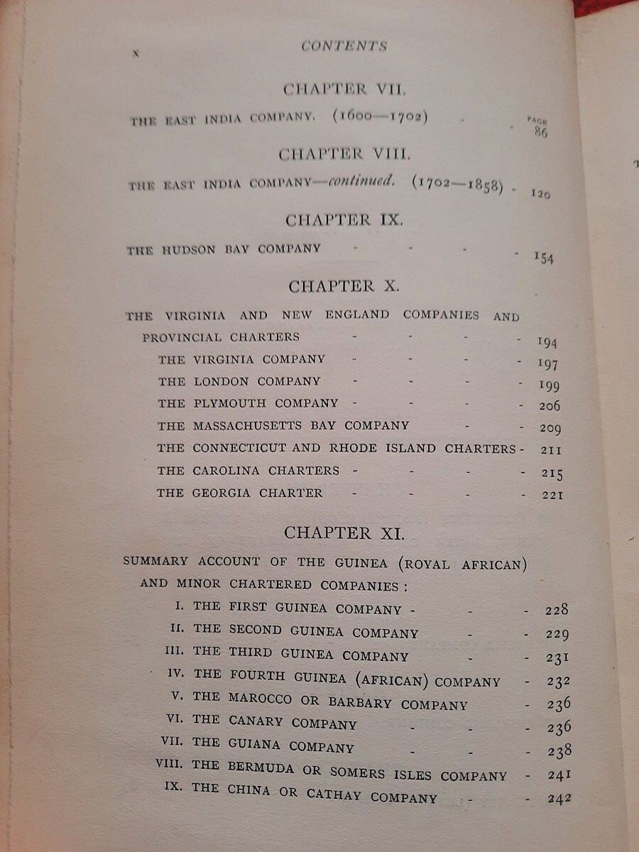 10) Guinea (Royal African) and minor chartered companies (The First Guinea Company, The Second Guinea Company, The Third Guinea Company, The Fourth Guinea (African) Company, The Marocco or Barbary Company, The Canary Company, The Guiana Company, The Bermuda or Somers Isles Company, The China or Cathay Company);