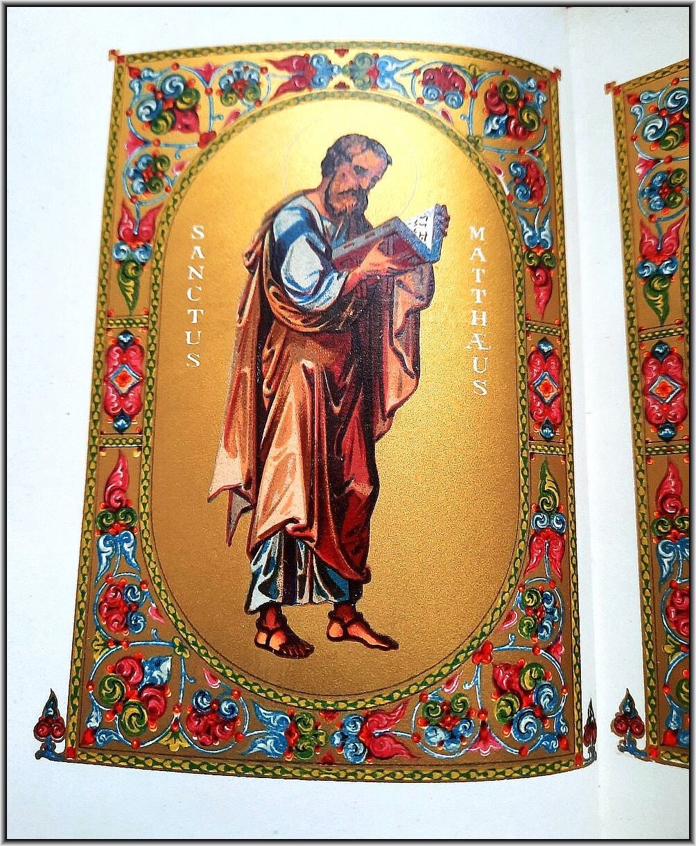 Richly illustrated with Chromolithograph Title Page, 8 full-page Chromolithograph Engravings, 8 full-page Chromolithograph Chapter Titles iand 4 additional chromolithograph pages of "Family Memories". All 180 text pages richly illustrated and illuminated by a different chromolithograph frames in Color & Gilt. Superb illuminations in chromolithographies taken from Medieval Manuscripts and Books of Hours. Letters, decorations and miniatures taken from ancient manuscripts; The text is framed with many different decorations: foliage, flowers, dragons, birds, figures, etc. All pages are printed in chromolithography on strong high quality cardboard.
