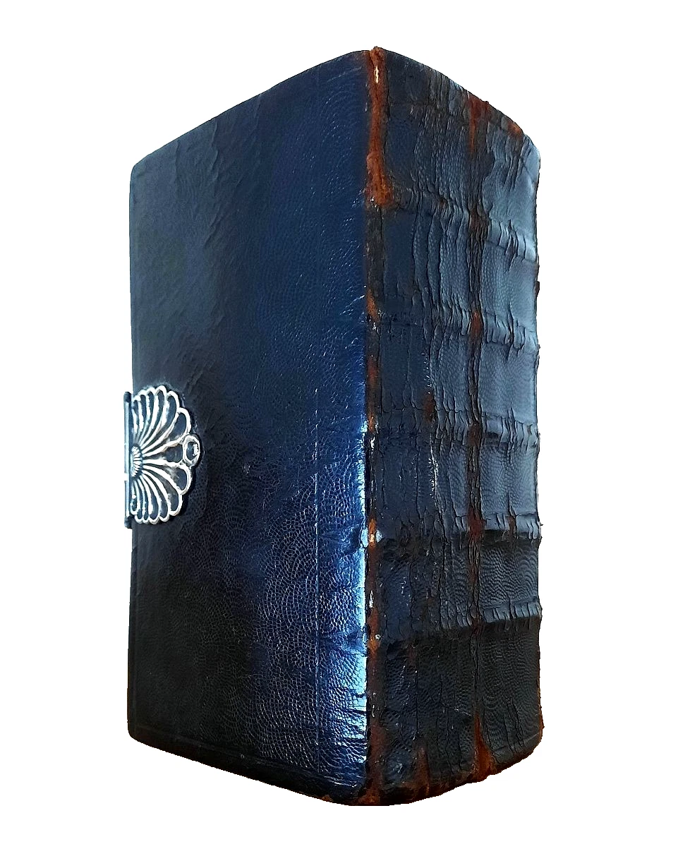 Bound in an original brown leather binding with a beautiful hand-made filigree silver clasp with debossed floral motive on the overlapping part.