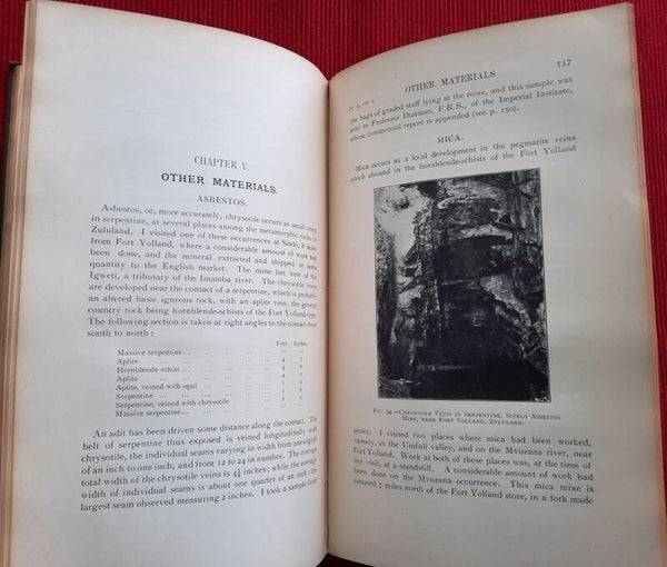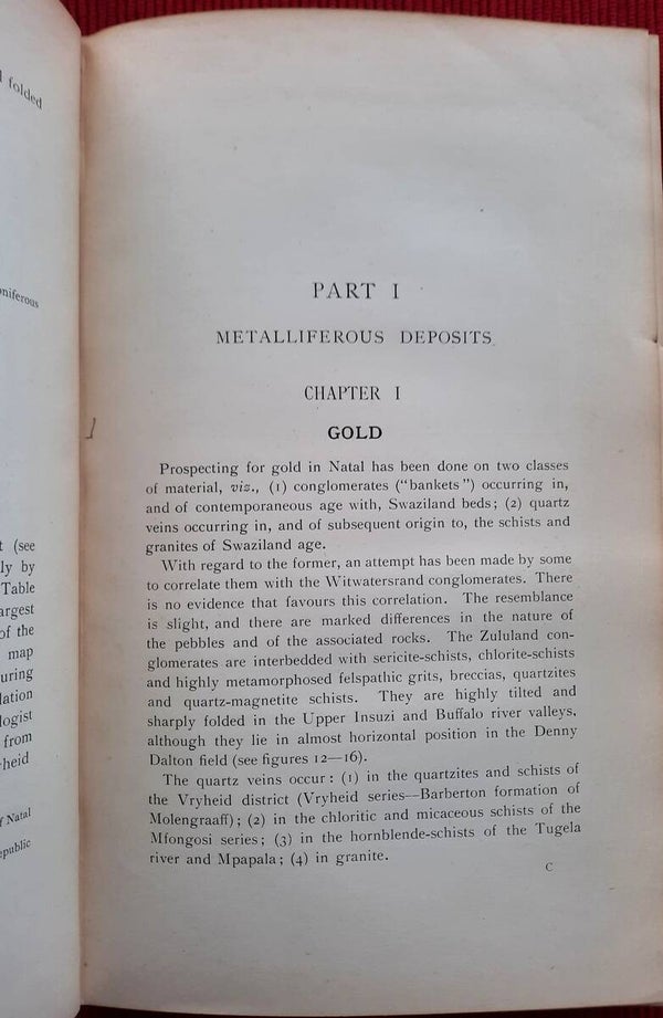A comprehensive treatise consisted of two parts (Metalliferous Deposits & Non-Metallic Deposits) with multiple folding color map in frontispiece, 7 plates at the rear (of which one is multiple folding map) and 34 in-text b&w photographic illustrations.