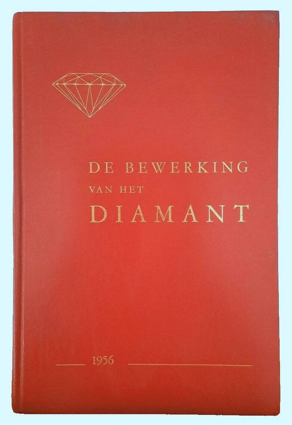 "De bewerking van het diamant."; Antwerpen, Christelijke Belgische Diamantbewerkerscentrale, 1956; 24,5 x 16 cm; Original publisher's red hardcovers, gilt lettering; Text in Dutch; Collation complete - Frontispiece, Title page, 272 pages, with 152 in-text illustrations and 20 photographic illustrated plates; A well preserved copy. Binding with a slight shelf wears, but firm, tight and secure, minor bumping mostly to the spine and board's extremities. Content is bright and clean, a few pages with a light fingerprints, othervise no foxing or markings, only negligible yellowing to the white margins.