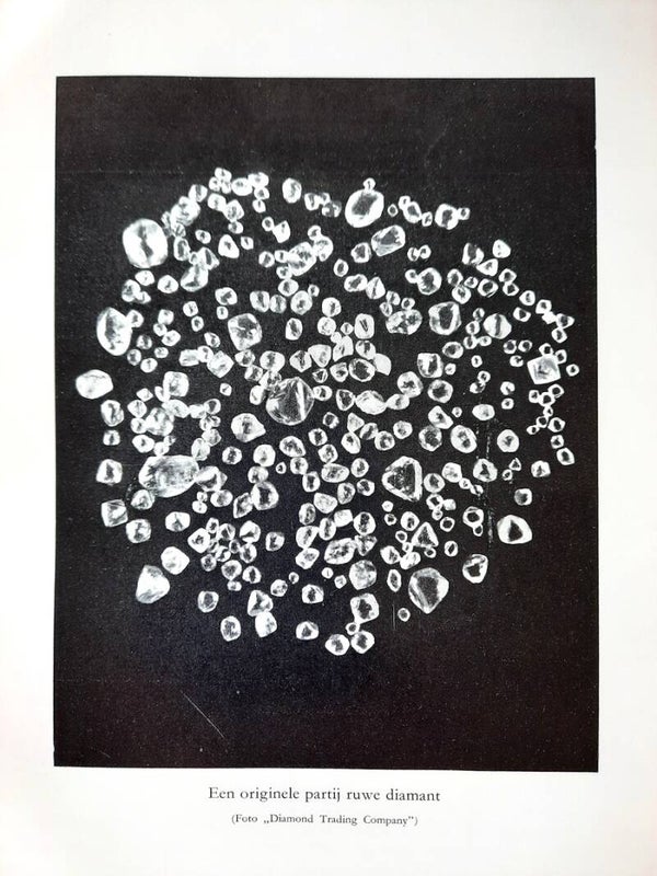 Determining the raw material, the properties of the diamond, its brilliance and light reflection, color dispersion, hardness, value, etc., were all already described in a series of articles. In 1950, under the care of the C.B.D., along with a series of articles on "inspecting," sorting rough, and grading polished diamonds, these articles were compiled and published in a beautiful book, illustrated with numerous interesting photographs, under the title: "The Diamond Industry in its Components."