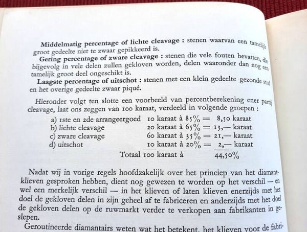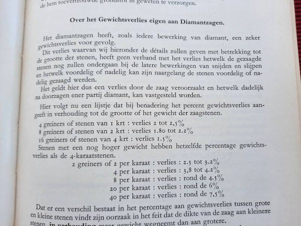 A scarce book and one of the most important reference books and manuals on diamond-working. The authors were "Laureaten van de Arbeid" and taught at technical schools including the vocational and training school of Christian Belgian Diamond Workers' Union, or C.B.D. (Christelijke Belgische Diamantbewerkerscentrale).