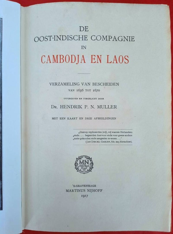 Muller, Hendrik P. N. - DE OOST-INDISCHE COMPAGNIE IN CAMBODJA EN LAOS; VERZAMELING VAN BESCHEIDEN VAN 1636 TOT 1670