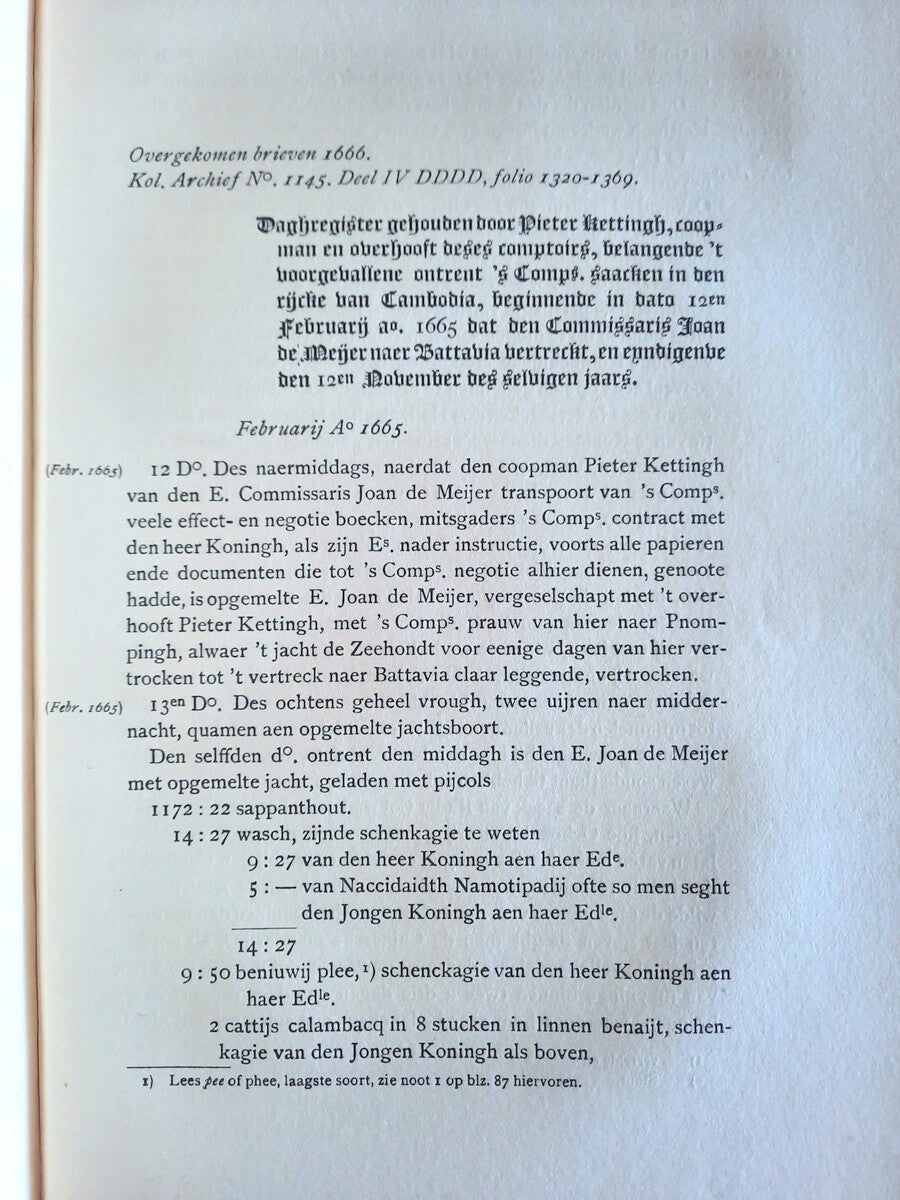 "One of the most important works was 'The East India Company in Cambodia and Laos. Collection of documents from 1636 to 1670' by Hendrik Muller. At the beginning of the last century, Muller was the director of a trading company in Mozambique and a supporter of the South African Boers. However, he fell out, and in 1907 he left for the Far East. There he wrote a book about the East India Company and Laos. He also discovered an unknown book: "Strange histories in the kingdoms of Cambodia and Laos, in the East Indies, since the year 1635 to the year 1644, as they happened there," about the journey Gerrit van Wuysthoff made from Cambodia to Laos, the text of which is reproduced. In 1641, Van Wuysthoff was the first Westerner to sail across the Mekong River, from Phnom Penh to Laos, buying deerskins...