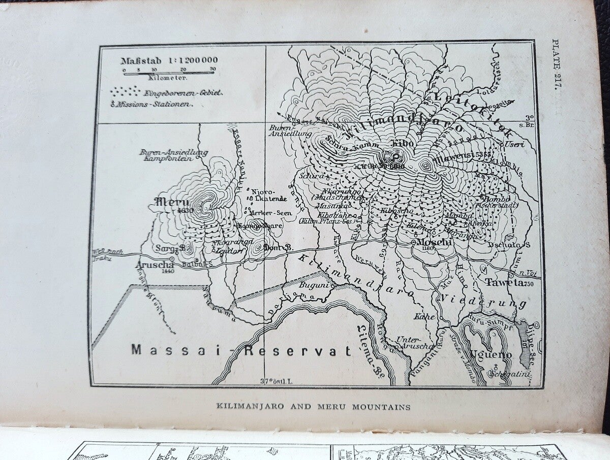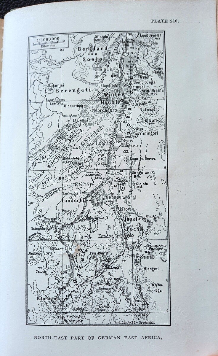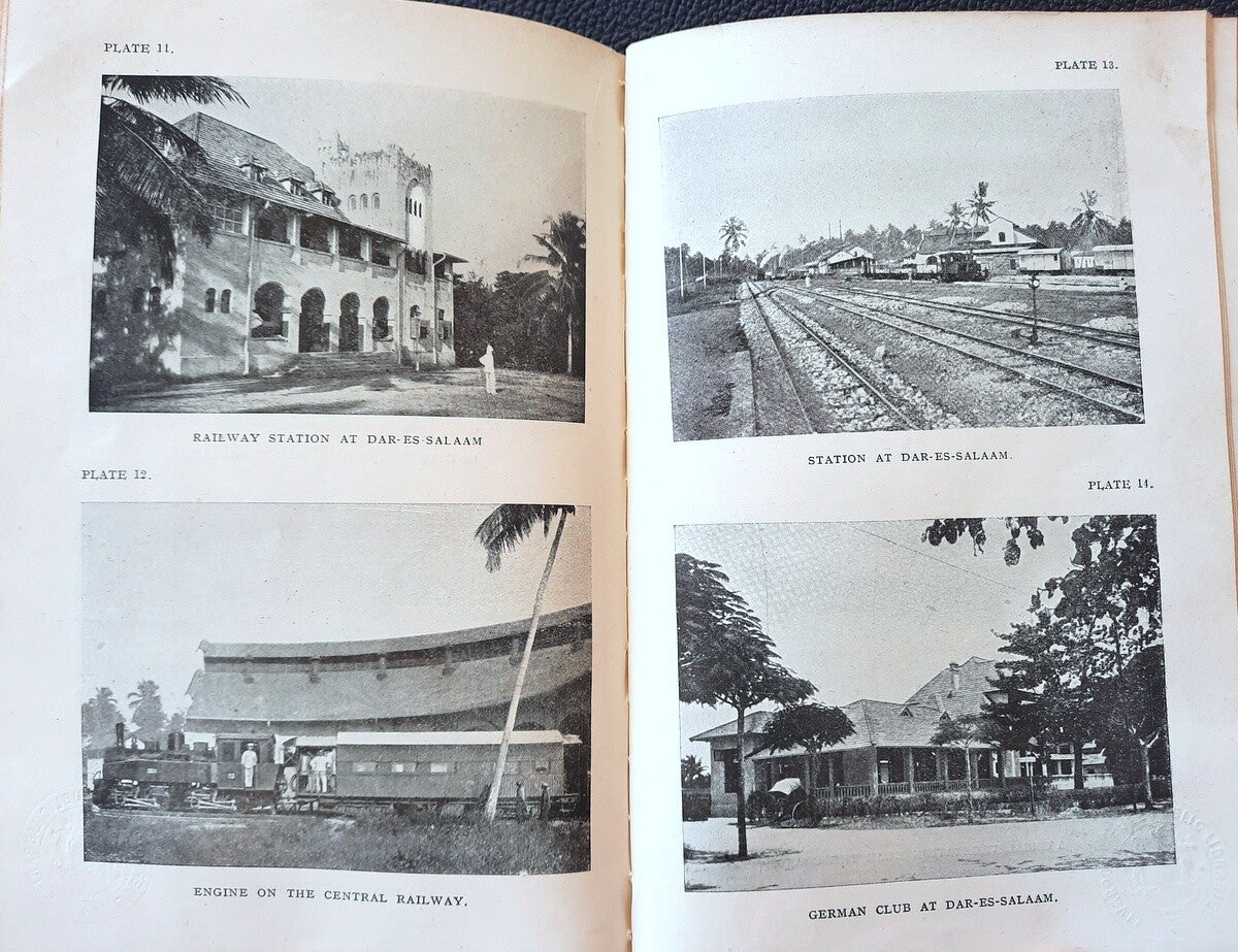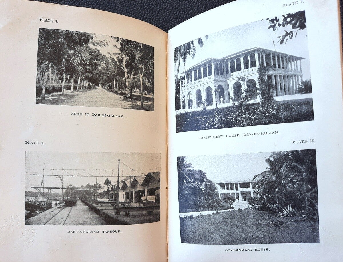 One of the most important reference sources on the German East Africa, a compendium compiled by Albert F. Calvert, gives a complete overview about German East Africa until 1917. This scarce work consists of nine chapters on 122 pages and 209 photographic plates on glossy paper at the rear (full page plates or two plates per page), 4 plates with profile diagrams and 6 maps. Includes many photos of native tribes and their chiefs, native women, hunting scenes, local life and tribe's customs, native and colonial settlements, plantation work scenes, etc.