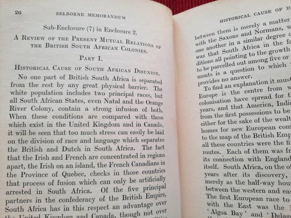 "The Selborne Memorandum" (officially titled "A Review of the Present Mutual Relations of the British South African Colonies" and published in 1907 by the Colonial Office), is a pivotal document authored primarily by Lionel Curtis under Lord Selborne, the British High Commissioner for South Africa. It argued that the separate British South African colonies were economically and politically interdependent, advocating for closer union or unification to resolve issues like railway disputes and economic instability. It's purpose was to make a historical and practical case for the unification of the British South African colonies (Cape Colony, Natal, Transvaal, and Orange River Colony) with an explanation that individual colonies could not effectively manage common issues like railways, customs, and native policy, stating they were "part of one whole".