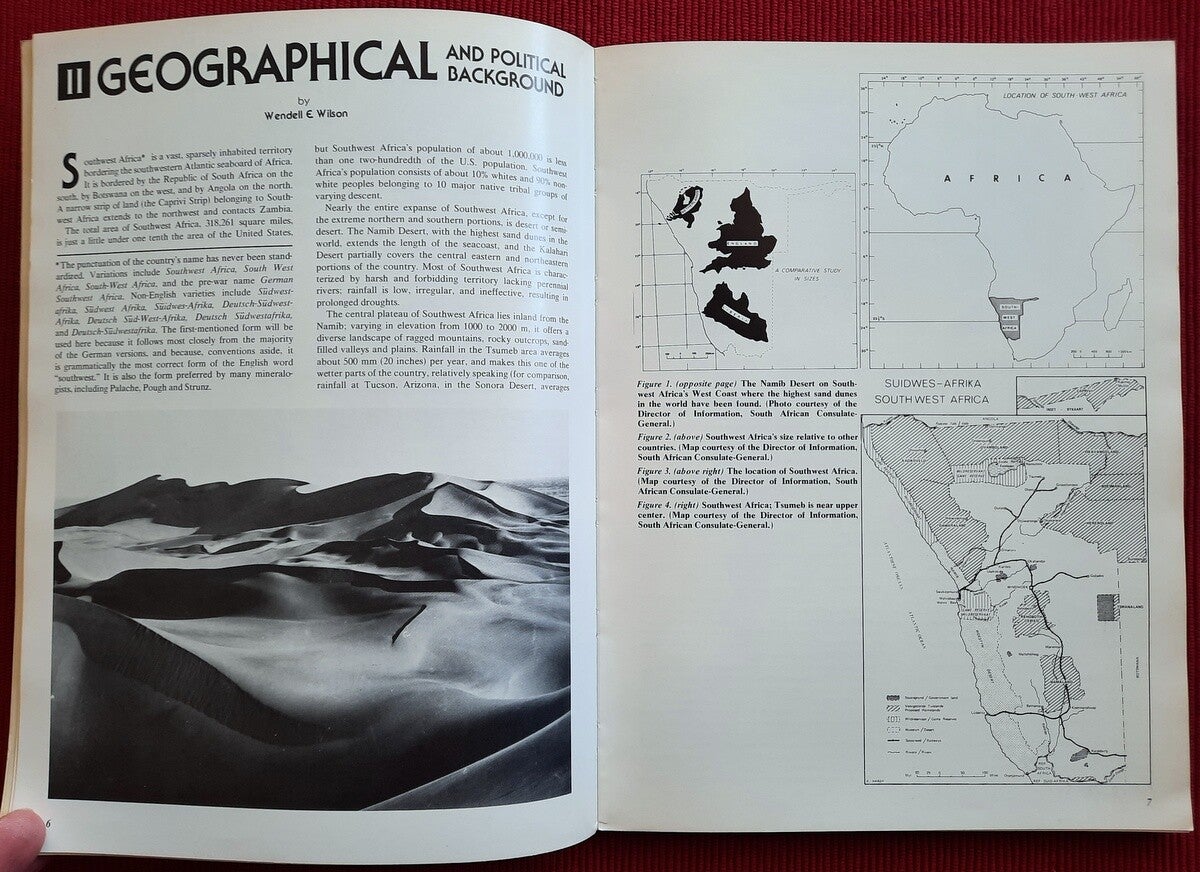 "This book, nearly three years in preparation, is without doubt the single most comprehensive work ever published on Tsumeb. The seed was first planted when Dwight Weber suggested writing his article for publication in the Mineralogical Record magazine. The subject was so exciting that we eventually envisioned a project of larger scope. A list of desirable chapter topics was composed; in April of 1976 we began seeking out other knowledgeable authors and asking them to write specific chapters on subjects they knew best. Background chapters on history and geography were added to give perspective and a feeling for the country. Original research on Tsumeb minerals was solicited. With computer assistance, the 1147 Tsumeb specimens in the mineral collection of the Smithsonian Institution were located, studied and, in some cases, photographed to provide a reference base for editing and reconciling the work of the other authors. The concept soon outgrew the scope a regular issue of the Mineralogical Record; the result is the book you now hold in your hands.