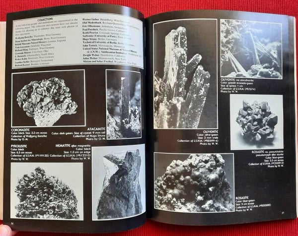The history has been summarized from the excellent but poorly circulated work by Söhnge (Tsumeb, a historical sketch) and has been brought up to date. Paul Keller, of the University of Stuttgart and a leading authority on the secondary minerals of Tsumeb, has contributed an illuminating and useful chapter on the paragenesis. Dwight Weber has compiled what is undoubtedly the most complete bibliography for the locality ever published. William Pinch, one of America's foremost species collectors and an accomplished part-time mineralogist, has described and discussed every species known to exist at Tsumeb; his descriptive list along with Weber's bibliography constitute an invaluable reference for both collectors and researchers. Charles Key, possibly America's top dealer in fine mineral specimens, has tapped his special knowledge to divulge the current resting places of many of Tsumeb's finest pieces, and also gives us a personal glimpse of Sid Pieters, Southwest Africa's leading collector. The photography has been assembled with special diligence and care. Many of the color photos and some of the black and whites are the magnificent work of German mineralogist Olaf Medenbach, a recent Ph.D. and co-author of the first description of the new Tsumeb mineral kegelite. Additional work by master photographers Nelly Bariand, Werner Lieber, Julius Weber, and others was graciously donated. Many of the species known to occur at Tsumeb are pictured, thereby providing a comprehensive visual reference for sample identification, and a feast of visual enjoyment for collectors. The research chapter is a gold mine (or perhaps we should say a copper mine) of data; a trio of new species from Tsumeb are described for the first time, and the knowledge of several other species is expanded by noted mineralogists such as Peter Embrey of the British Museum (Natural History), Richard Erd of the U.S. Geological Survey, Fabien Cesbron of the Sorbonne, and Pete Dunn of the Smithsonian Institution. Finally, a chapter is devoted to the many mineral dealers from whom collectors, researchers and curators may obtain Tsumeb specimens. A mineral index is also provided for reference.