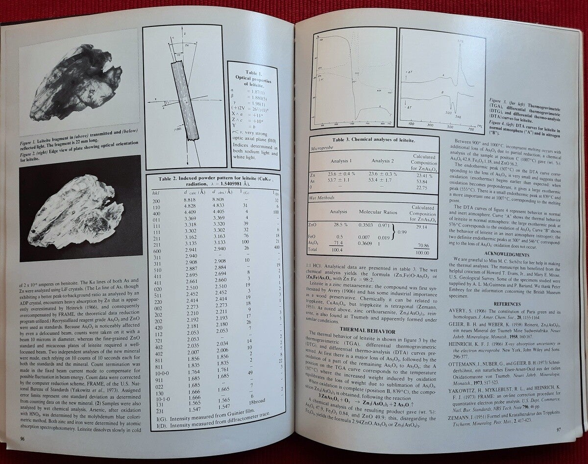 It is conceivable that Tsumeb, as a source of minerals for research and display, will not survive long beyond the publication of this work. It would indeed be unfortunate if our words became the epitaph of the greatest of localities. Nevertheless, the preservation and dissemination of information on Tsumeb would then be even more important. Hopefully this work will serve as a practical, valuable and educational reference to collectors, curators and mineralogists interested in Tsumeb, and will stimulate further study of this unique deposit."