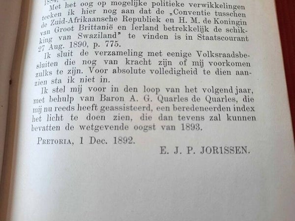 Jorissen, Eduard Johan Pieter - CODEX VAN DE LOCALE WETTEN DER ZUID-AFRIKAANSCHE REPUBLIEK (1894)